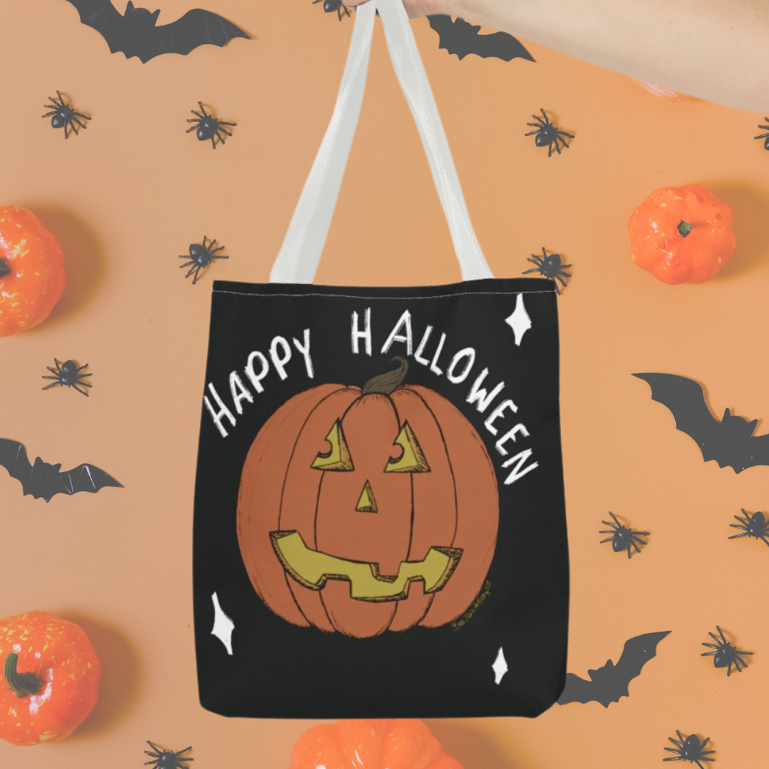Celebrate Halloween in style with this festive jack o lantern pumpkin tote bag! Perfect for trick or treating or carrying around essentials during the spooky season. A must-have for Halloween enthusiasts of all ages.